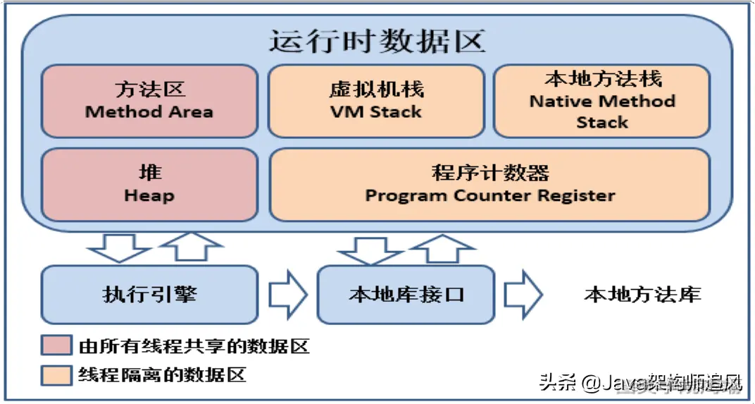 - JVM(Java Virtual Mechinal),Java虚拟机,是JRE的⼀部分,它是整个java实现跨平台的最核⼼的部分,负责运⾏字节码⽂件。