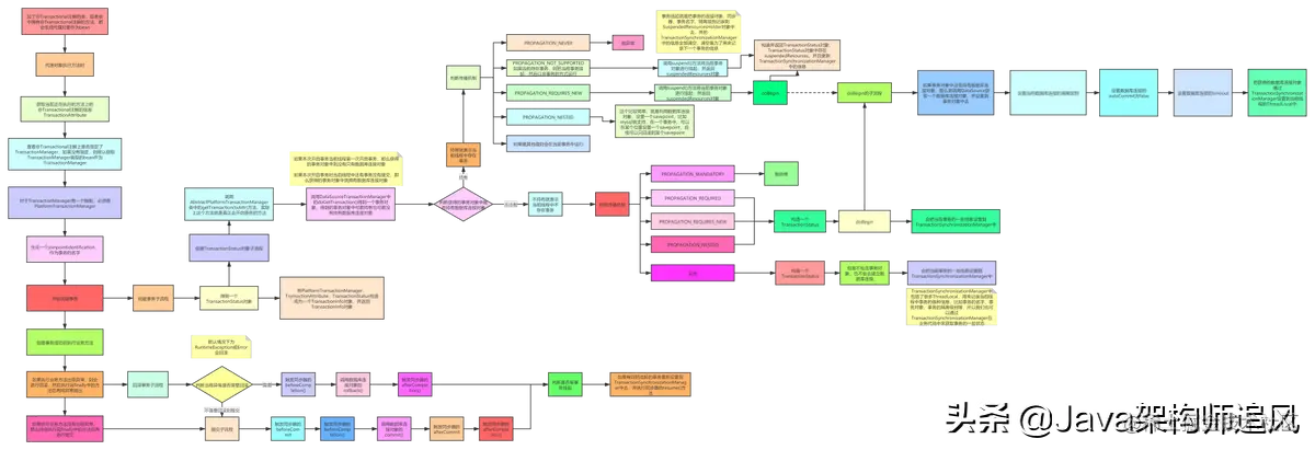 - Spring事务的传播机制是基于数据库连接来做的,⼀个数据库连接⼀个事务,如果传播机制配置为需要新开⼀个事务,那么实际上就是先建⽴⼀个数据库连接,在此新数据库连接上执⾏sql