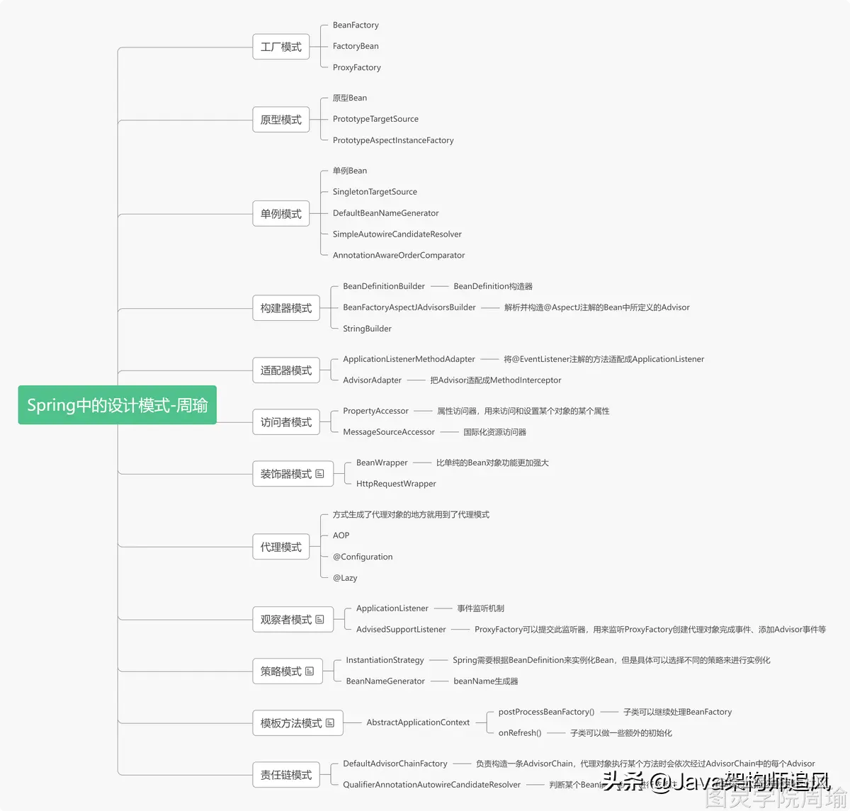 Spring⽤到了哪些设计模式