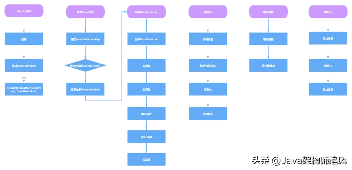 Spring中⼀个Bean的创建⼤概分为以下⼏个步骤: