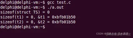 下面为输出结果,可以看到在 gcc 编译器中空结构体的大小就为0。
