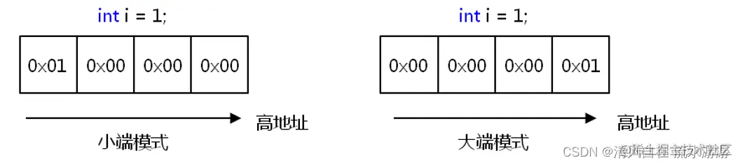 小端模式下地址值存储低位数据,大段模式下低地址存储高位数据。