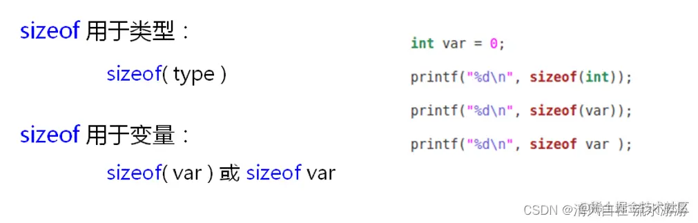 - sizeof 用于计算类型或变量所占的内存大小