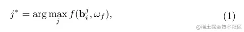 给定图像级标签,WSOD中的MIL方法将每个图像视为一实例包。学习过程在实例选择和实例分类器学习之间交替。将具有参数ωf的实例选择器f应用于正包Bi,以选择最正的实例,指数j∗通过以下方式获得:
