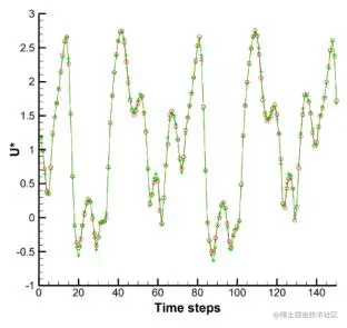 这种方法将几何外形这样的已知信息输入网络,直接获得流场解。本课题组韩仁坤博士提出了一种混合神经网络结构,用于对动边界非定常流场进行深度学习。在周期性振动的圆形动边界非定常流场中获得了较好的预测效果,并且具有较好的泛化性能。