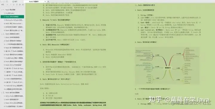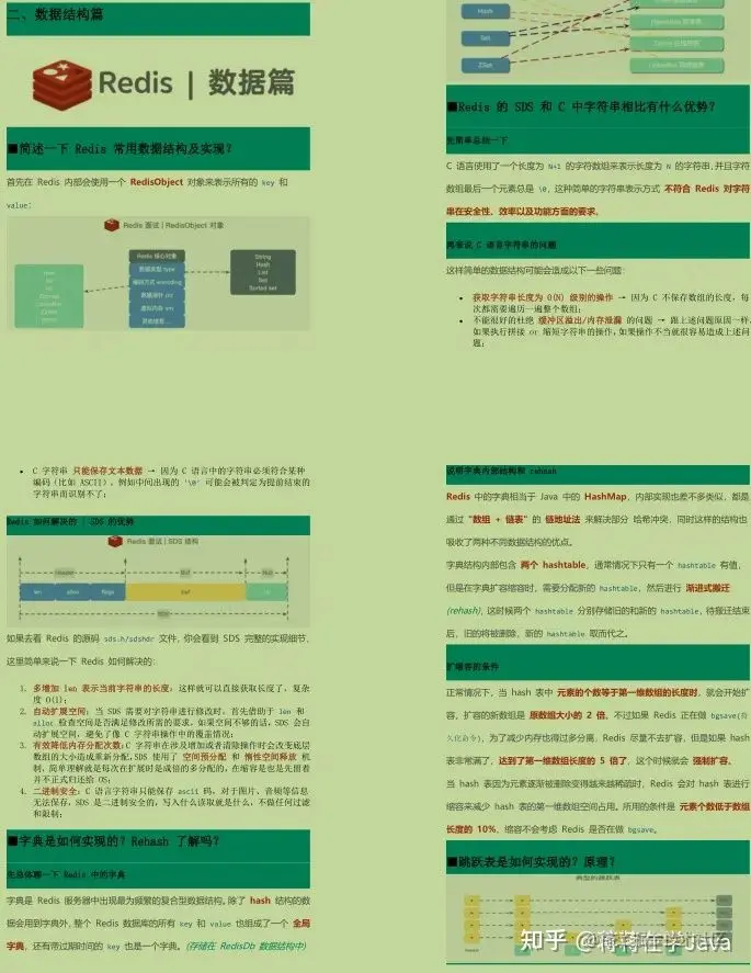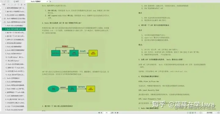 总共是从Redis的概念理解、数据结构与指令、高并发处理策略、集群结构以及设计理念、缓存管理与持久化机制、应用场景设计等六大部分整理了以上的70高频问,答案解析总共是有25页(如下图所示),篇幅有限没法全部在文章中写上(后面还有手写笔记等),但可分享给需要的朋友,收藏+关注之后,看【小编主页】拿走
