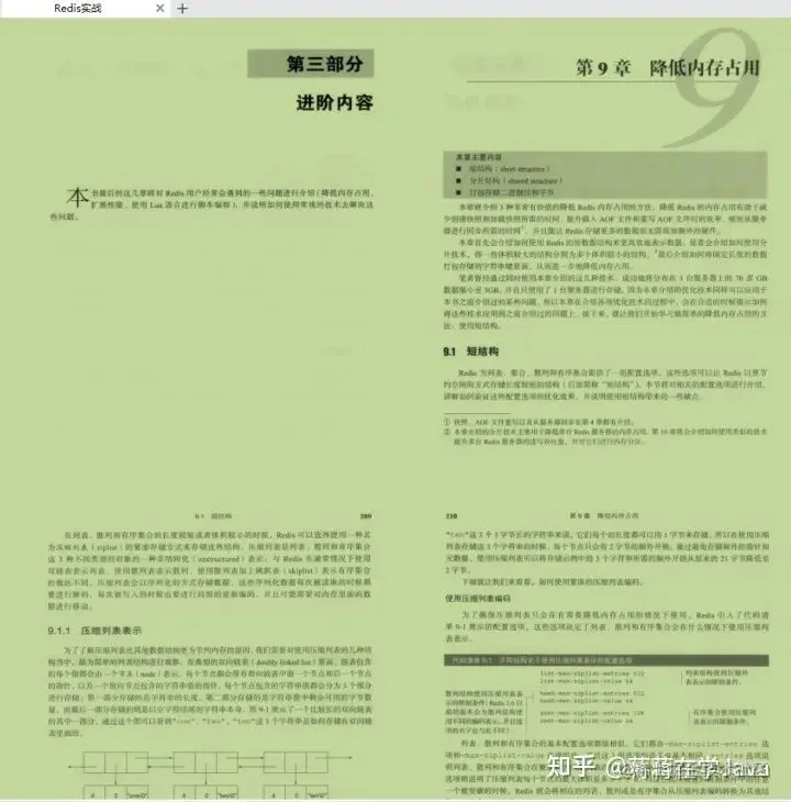 第三部分 进阶内容:对Redis用户经常会遇到的一些问题进行了介绍,讲解了降低Redis内存占用的方法、扩展Redis性能的方法以及使用Lua语言进行脚本编程的方法;