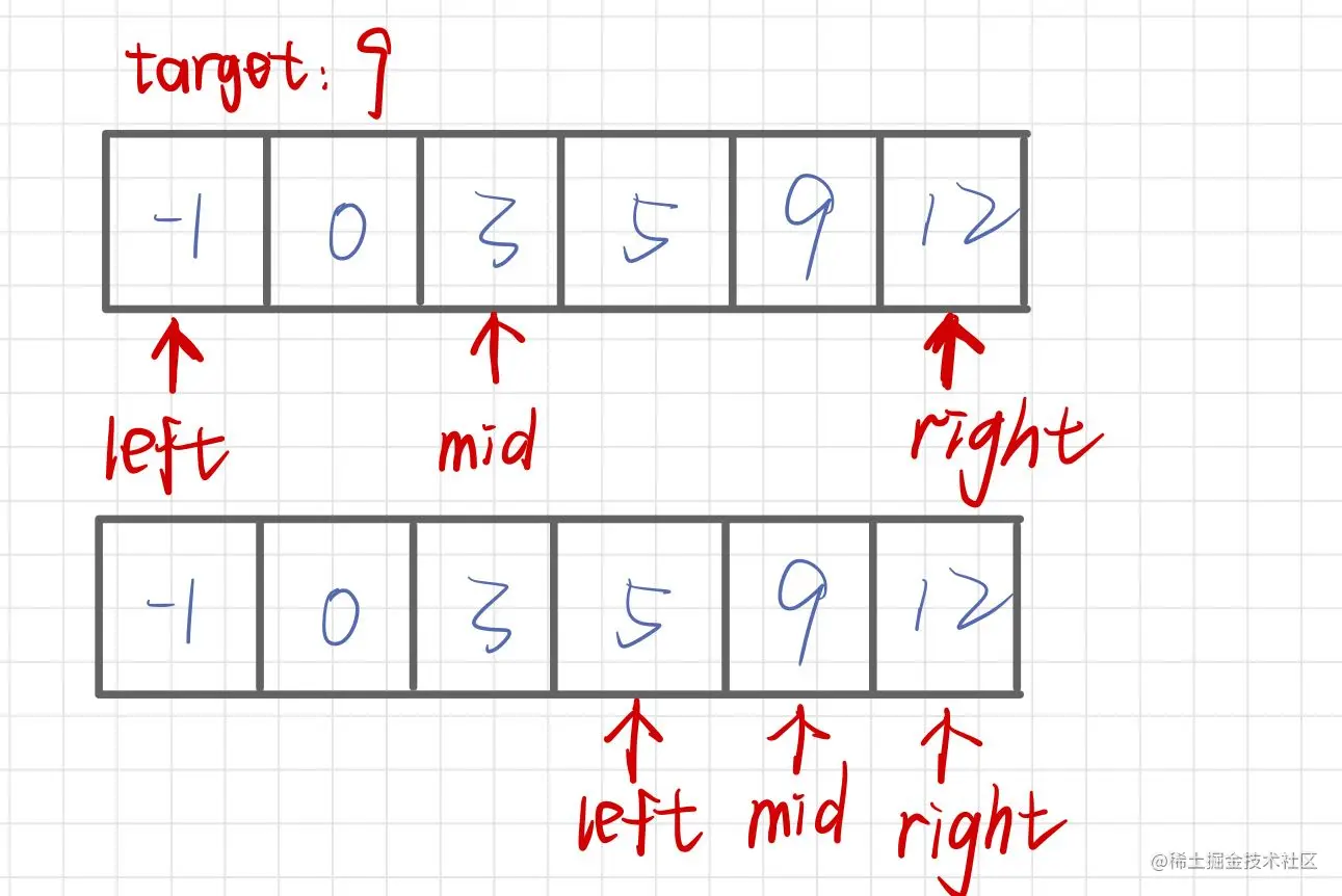- 首先找到数组中间的数字和目标值进行比较