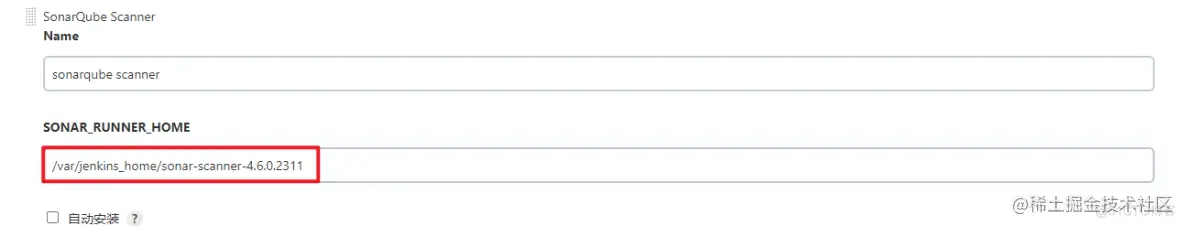 这里我们自己将sonar-scanner下载,将其放到Jenkins数据卷挂载的本地目录中。这样sonar-scanner也就实际存在于/var/jenkins_home