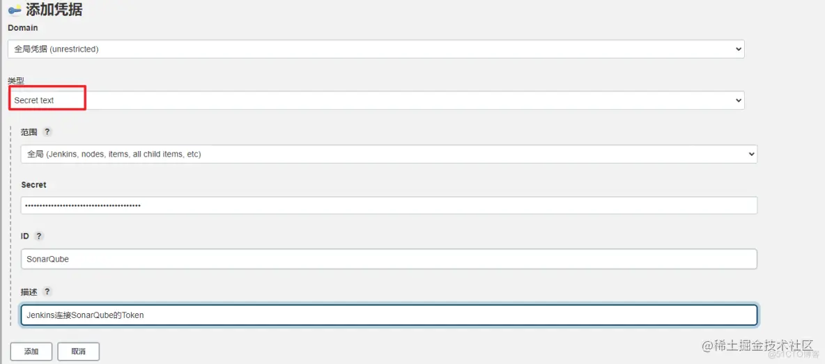 按照以往经验,在添加登录凭证的时候选择的都是用户名/密码的方式,这次我们选择Secret Text的方式