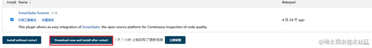 进入到Jenkins的插件管理页面,在其中搜索集成SonarQube Scanner,然后点击安装