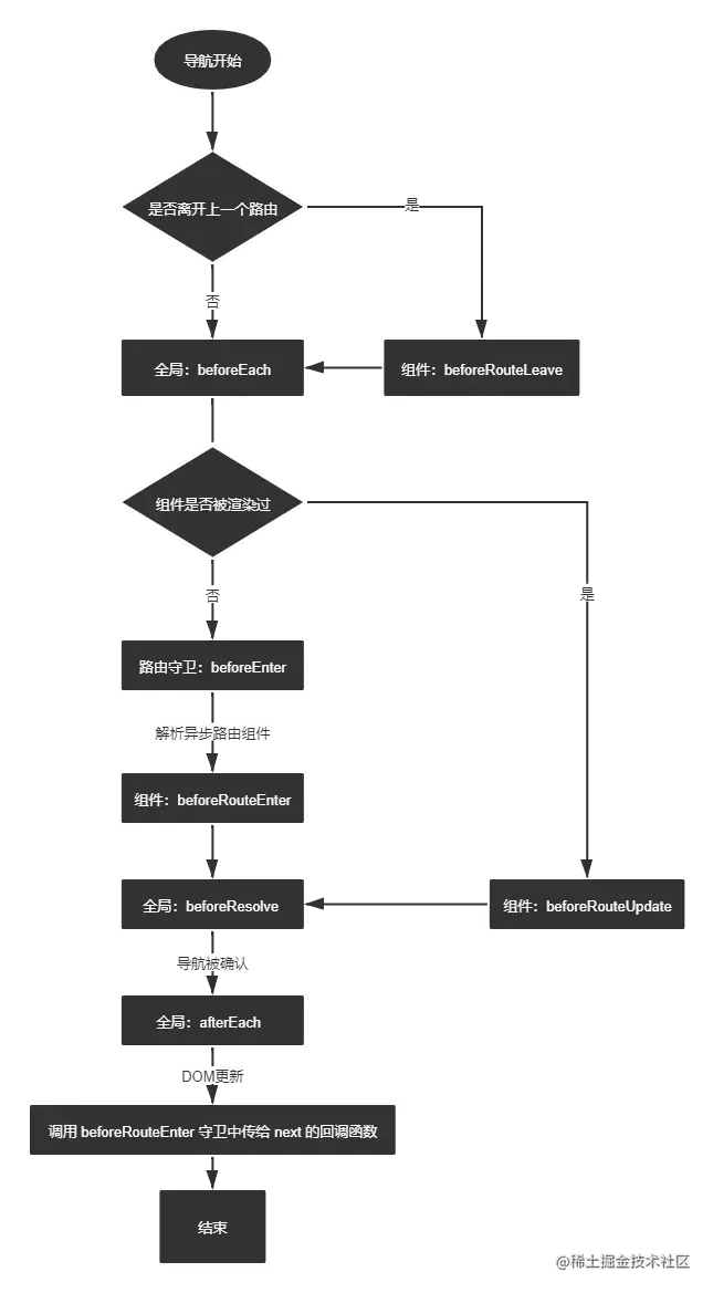 在全局守卫beforeEach和路由守卫beforeEnter后 全局 beforeResolve 和全局 afterEach 之前