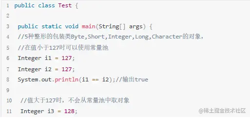 种浮点数类型的包装类则没有实现。另外Byte,Short,Integer,Long,Character这5种整型的包装类也只是在对应值小于等