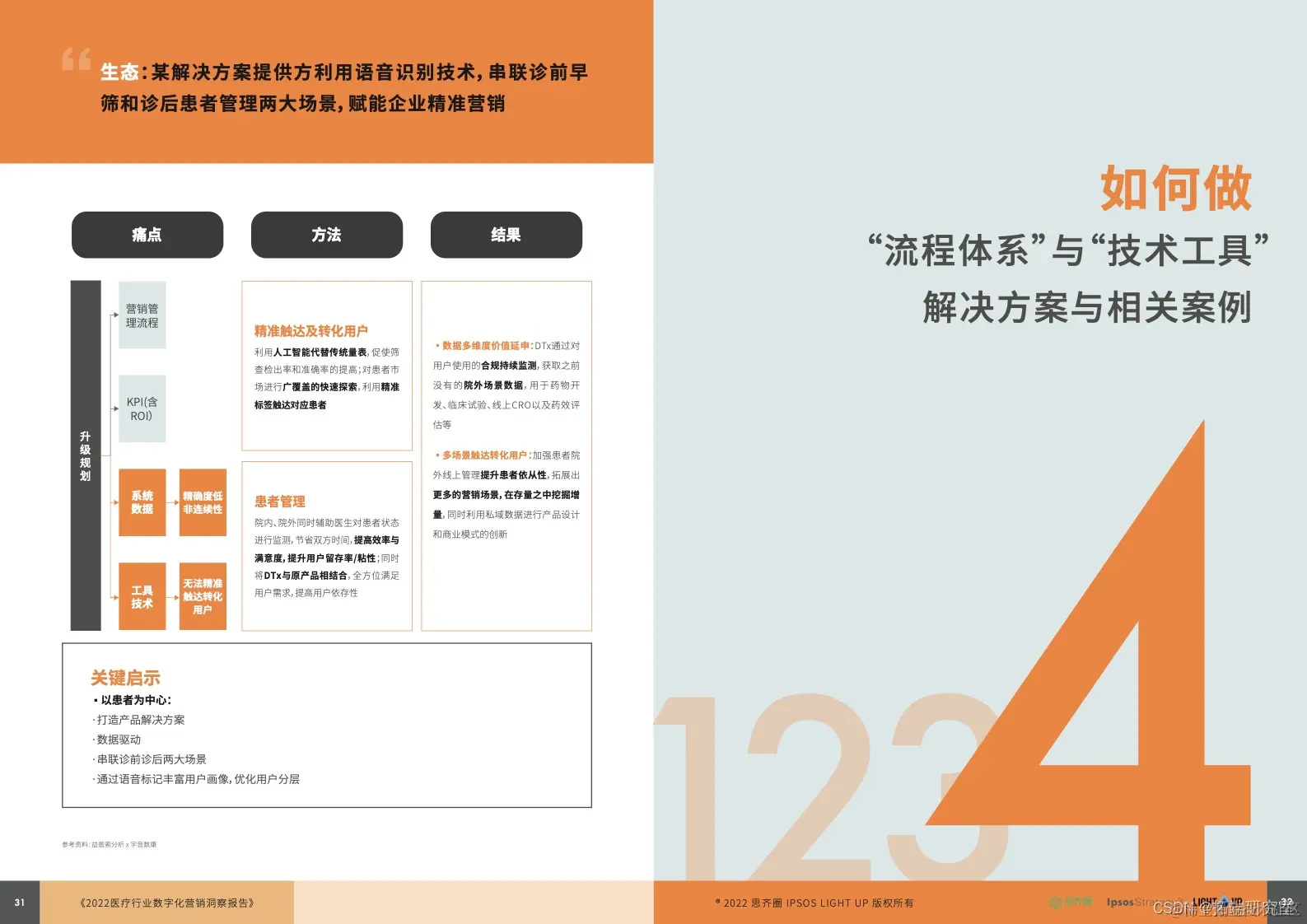 综合分析,我们认为上述问题的破题关键在于回归升级规划、流程体系、技术工具,重塑医疗企业的数字化营销之路。