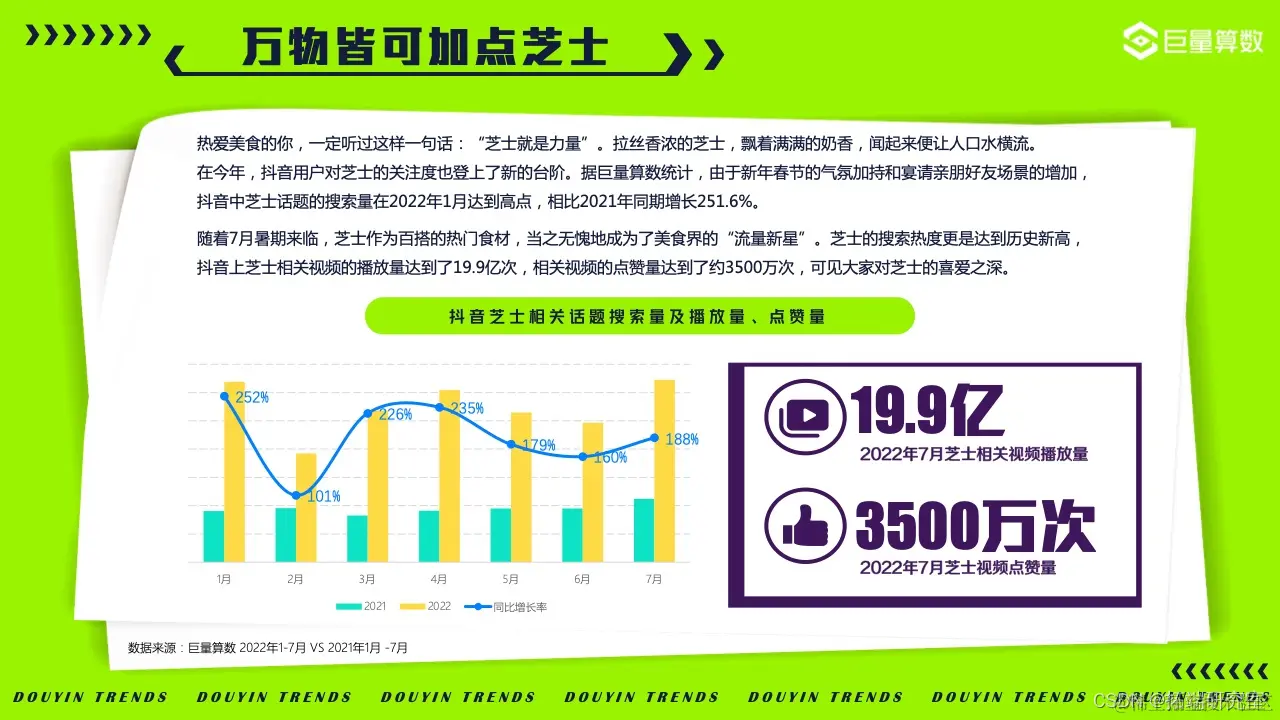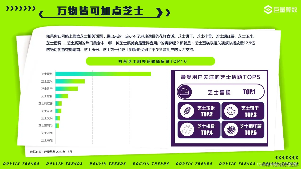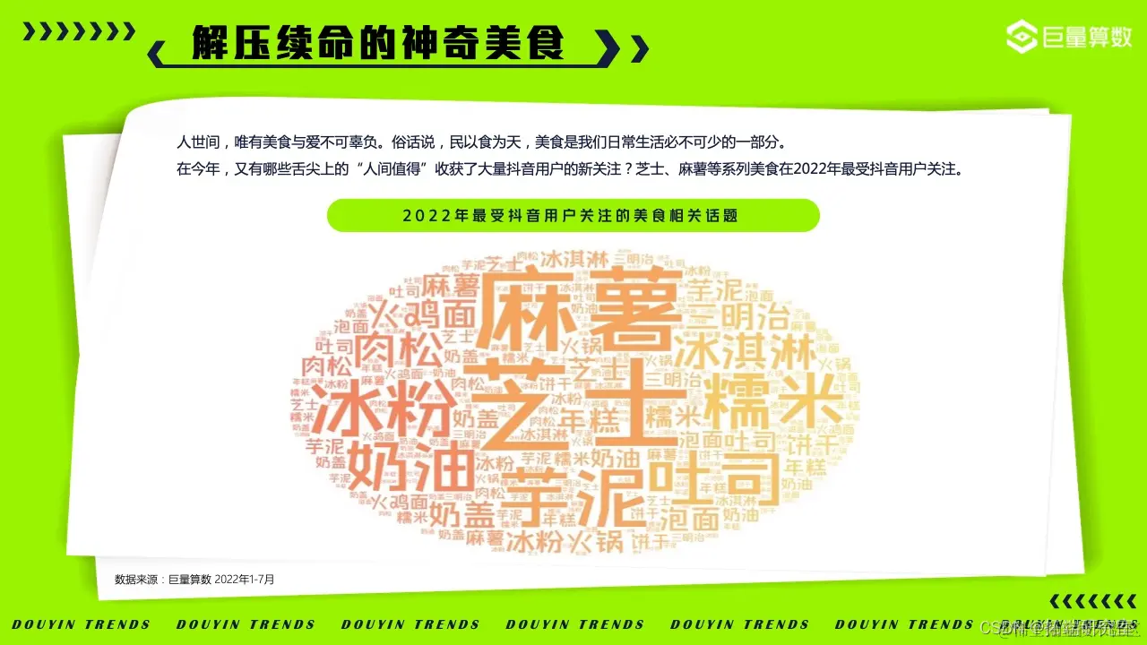 人世间,唯有美食与爱不可辜负。在今年,芝士、麻薯等系列美食在2022年最受抖音用户关注。
