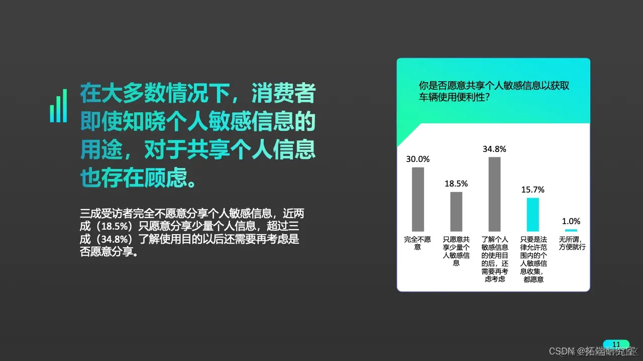 该调查于2021年11月至12月通过《环球时报》和君迪微信公众号进行样本收集,重点研究了消费者对智能网联汽车数据安全的认知、信心和担忧等。那么,调查结果到底释放了哪些重要信号?(文末附报告下载链接)