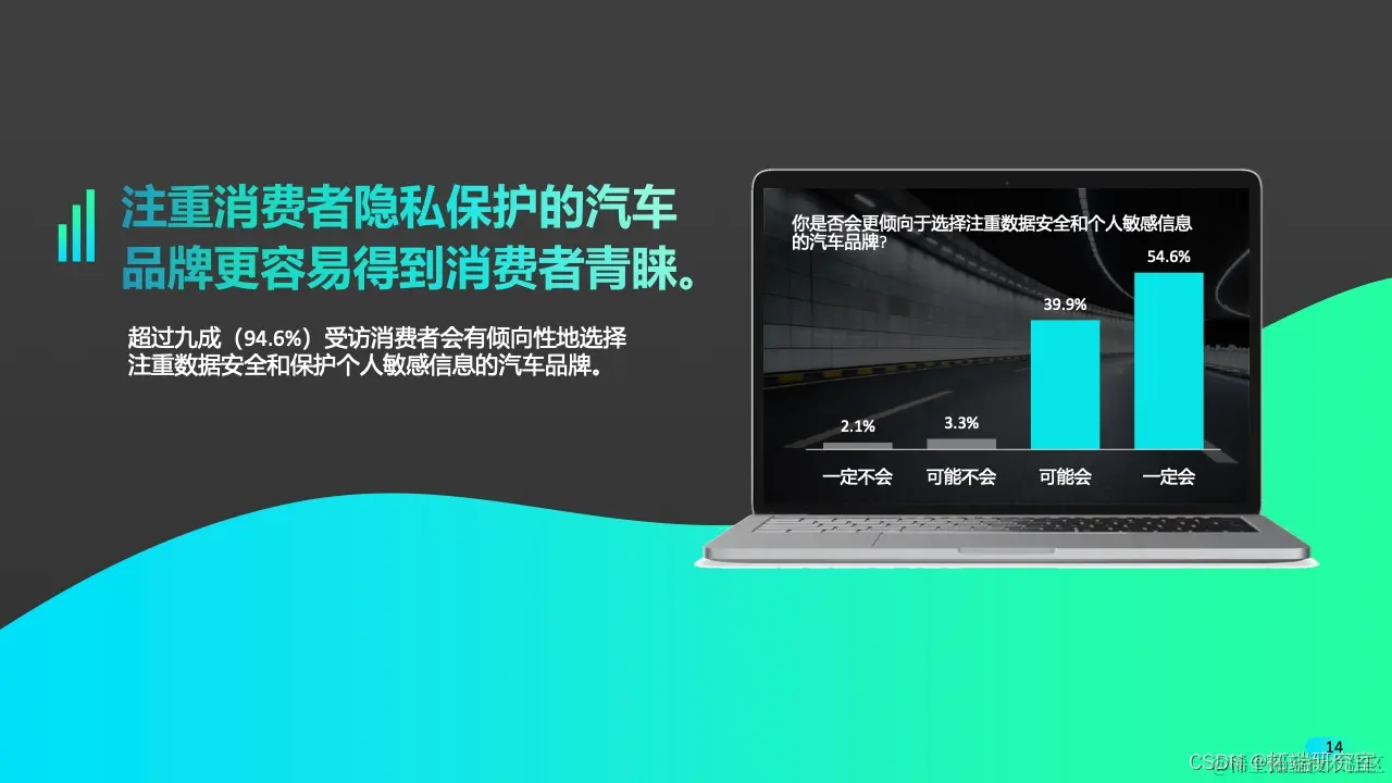 调查中,一个十分重要的发现是:超过九成(94.6%)受访消费者会有倾向性地选择注重数据安全和保护个人敏感信息的汽车品牌。这其中,54.6%的消费者表示“一定会”购买数据安全保障能力强的品牌。
