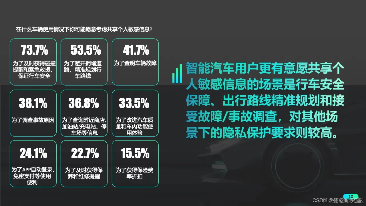 这说明,随着社会对智能网联汽车关注度的提升,数据安全正成为影响消费者购车决策的重要因子,并成为车企智能化竞争的“分水岭”。这意味着,未来,那些在数据安全和个人隐私保护方面有所建树的车企,将更容易建立起新的竞争优势,从而获得更多消费者的青睐。