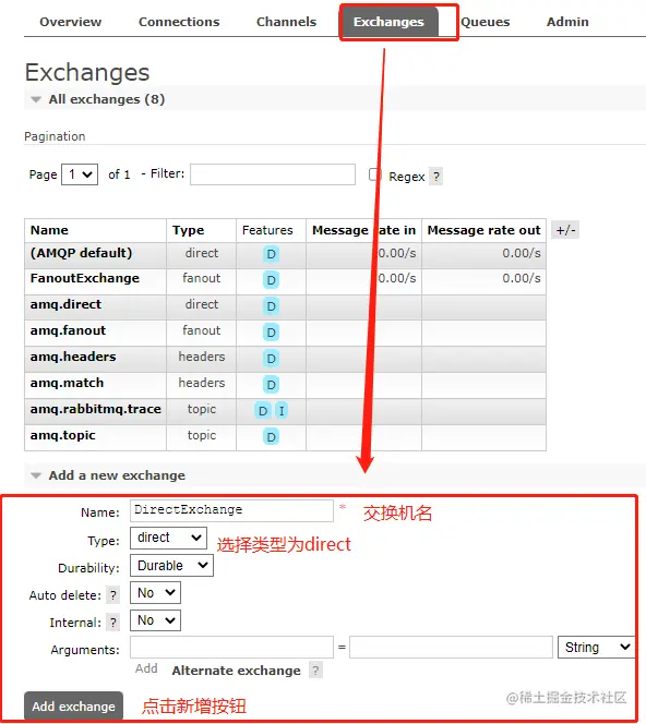 先创建一个Direct模式的交换机;