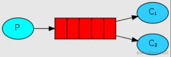 - C1、C2:表示多个消费者,都可以从同一个队列接收消息;