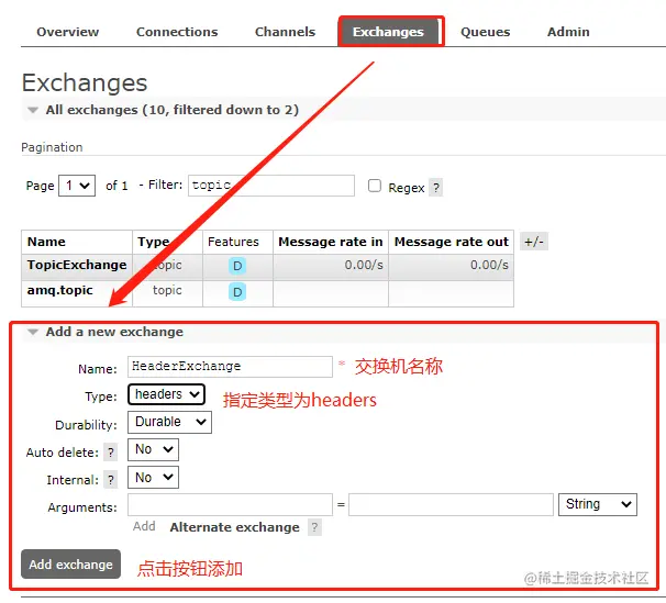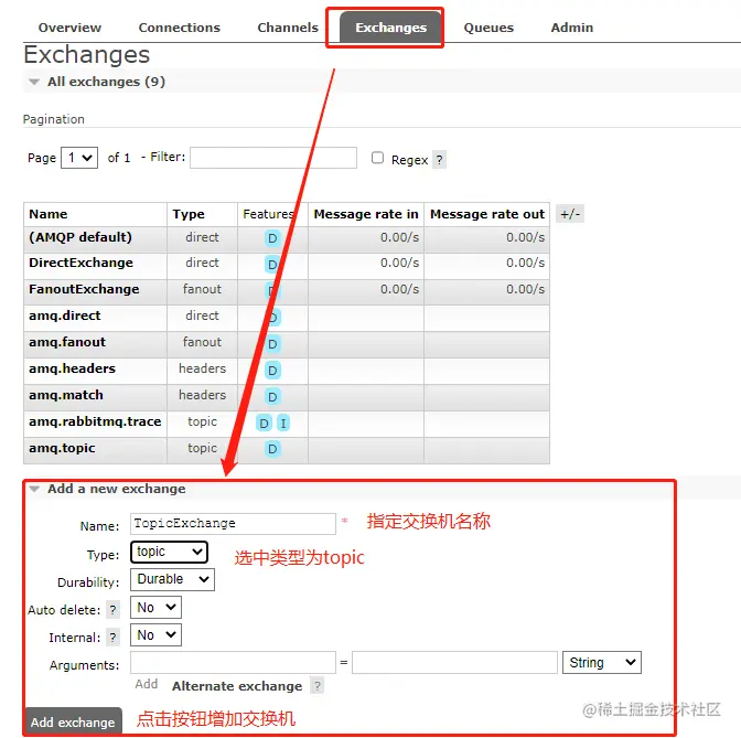 先创建一个Topic模式的交换机;