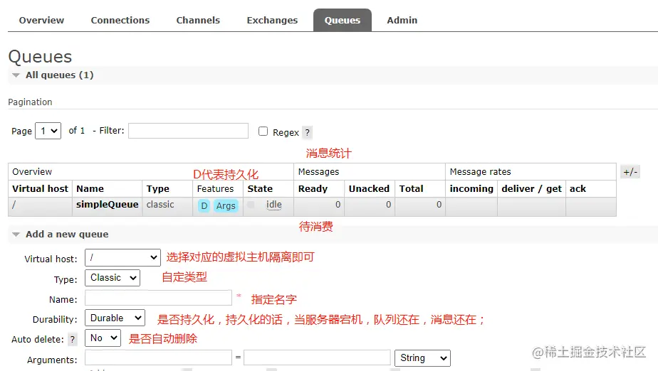 创建队列的时候需要传几个参数,分别意思如下: