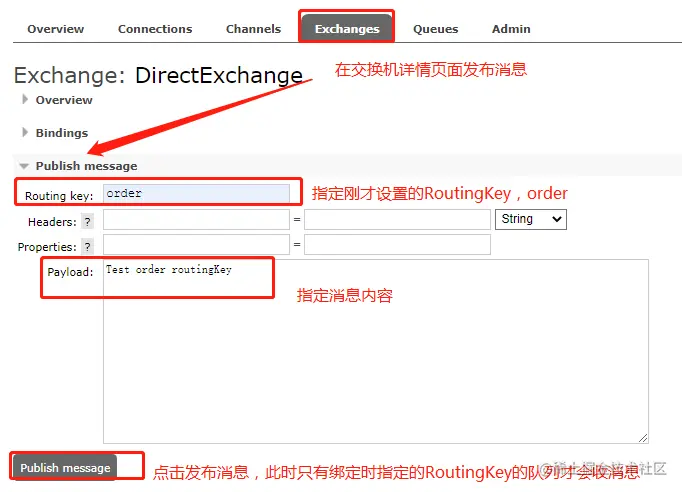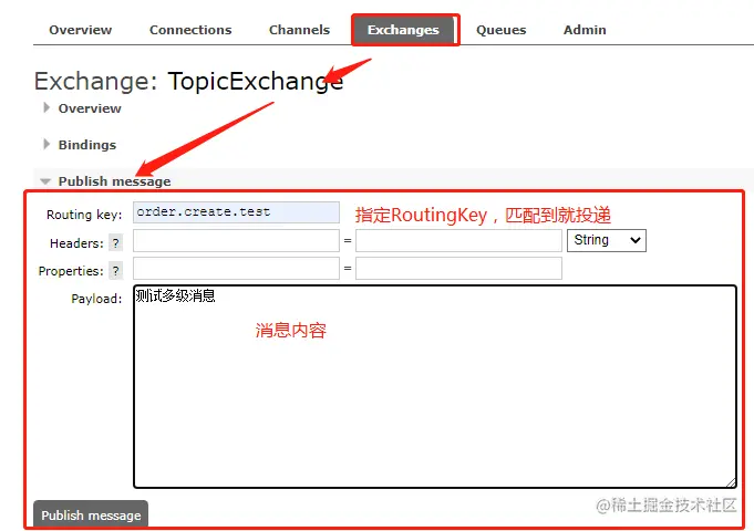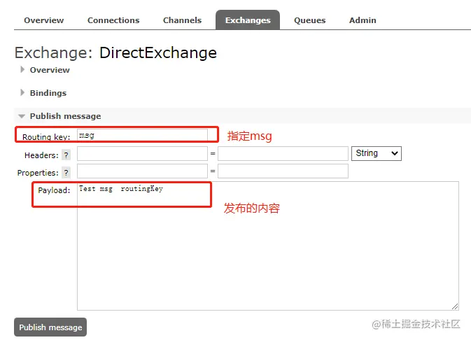 再发布一个消息,指定RoutingKey为msg,如下: