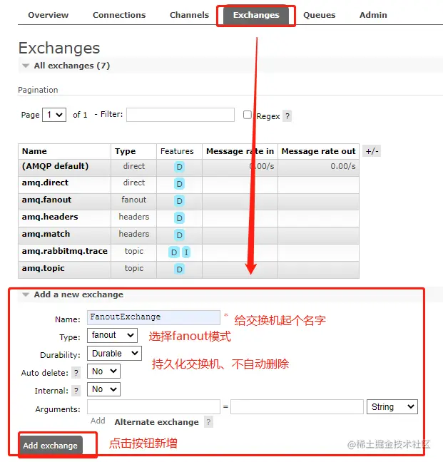 先创建一个Fanout模式的交换机;