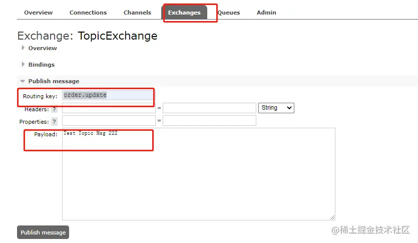 再指定RoutingKey 为order.update 发布一个消息,如下: