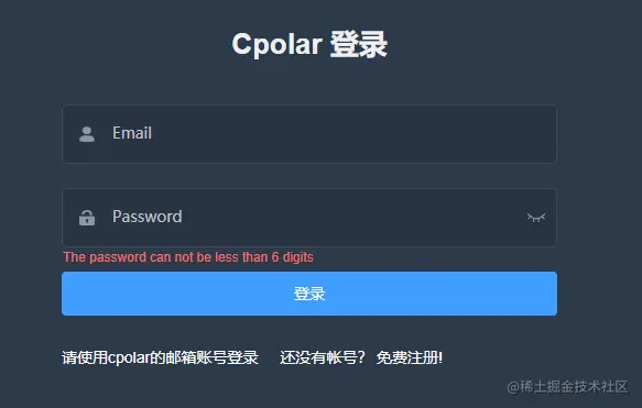 为了保证数据隧道的唯一性和安全性,我们需要输入cpolar的用户名和密码。
