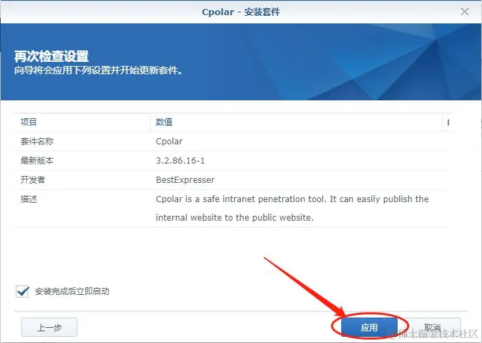 要使用cpolar创建的额数据隧道,自然是先在群晖NAS中安装cpolar。我们可以根据群晖的实际情况(如群晖系统版本、使用的硬件情况等),选择下载对应的cpolar套件,接着在群晖套件中心以手动安装方式,将cpolar安装到群晖系统中。