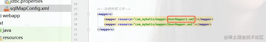 还需注意将sqlMapConfig.xml下加载UserMapper1.xml下