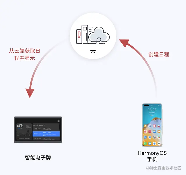 我们在手机端的数字管家APP中更新日程信息后对应信息将上传至云端,我们开发的智能电子牌应用会通过HTTP协议主动获取云端日程信息并进行显示更新。