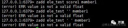在计算机中,字符都是可以比较大小的,那么score的数据类型是不是只要是字符型就可以的呢?答案是否定的。如下图,当我们使用非数字类型的时候会提示“(error) value is not a valid float”的错误信息。同时这个错误信息告诉我们,score类型是浮点型的数据。