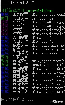 同样使用微信开发者工具导入Taro框架的项目。在项目目录下执行npm run dev:weapp命令。