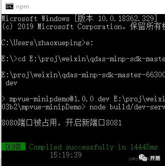 此时需要在cmd中定位到项目路径下,执行wepy build命令,成功后,小程序即可正确预览。每次项目改动后,也要在项目路径下,执行wepy build,重新编译刷新小程序。