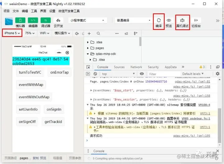 两种方式都会出现另外一个真机调试窗口,且在手机微信端打开调试状态的小程序页面。