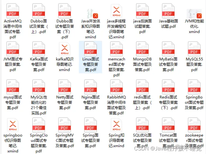 Java 后端+Spring+SpringCloud+SpringBoot+SpringMVC+Mybatis+MySQL+SQL 优化+Tomcat+Dubbo+JVM+Kafka+Linux+Nginx+Zookeeper+多线程+高并发+乐观锁+悲观锁全套的面试资料题,五刷过后还是会有收获的题。