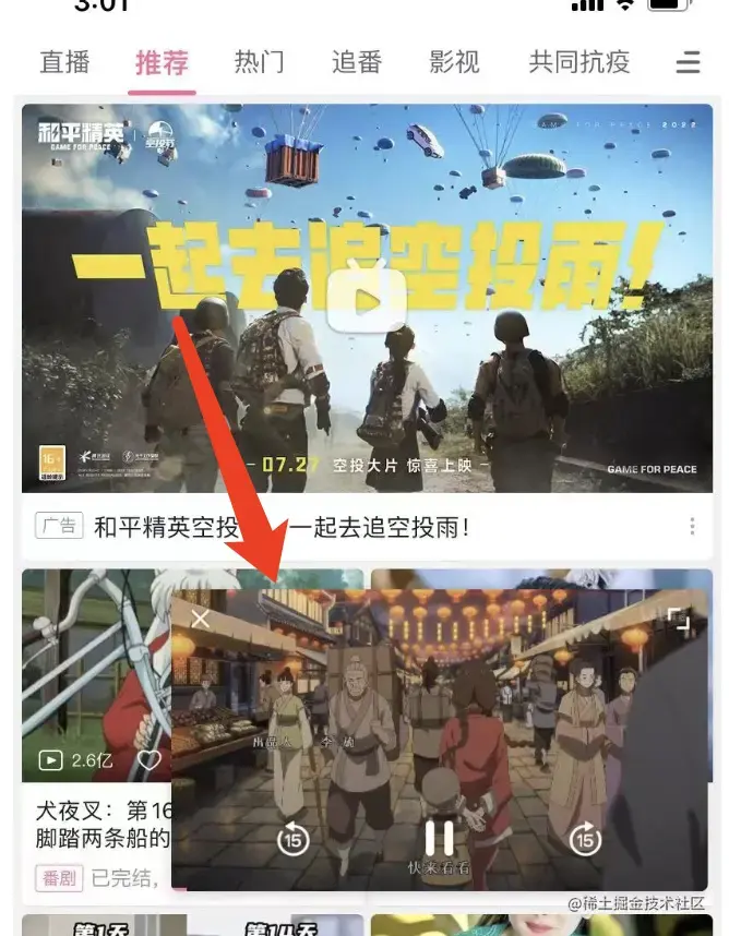 问题难点:该拖拽区域是整个页面,展示层级最高,点击除了直播小屏外的父元素需要穿透点击,点击直播小屏进行小屏的操作