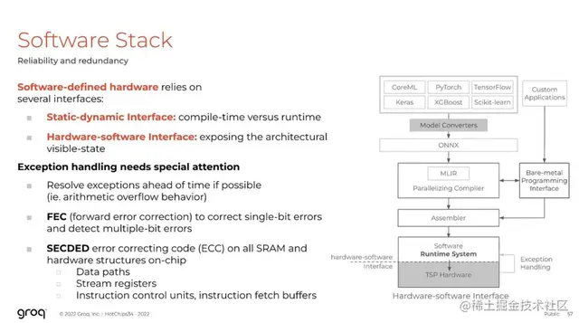 软件堆栈对可靠性和冗余性起着重要作用,特别是在运行时层面处理异常处理时。这就是为什么所有链路都需要前向纠错,如果遇到错误,则需要软件重演(software replay),并且通过运行时处理。