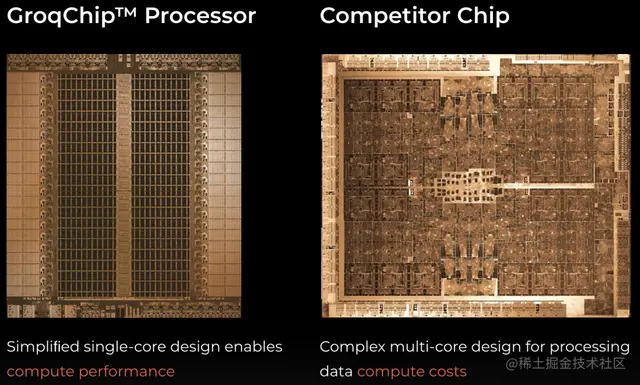 Groq的软件将深度学习模型编译成指令流,所有这些都是预编排的。他们用“软件定义硬件”的思路,将芯片中的控制和调度操作都交给软件完成,从而减少相应的硬件开销,压榨更多的性能。