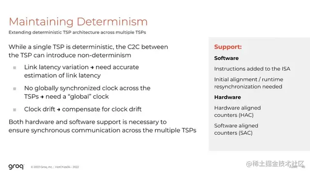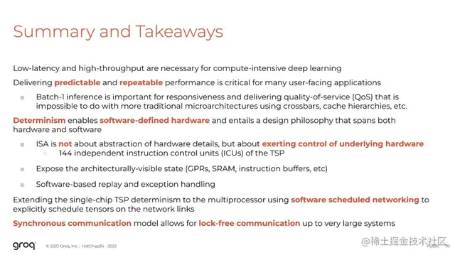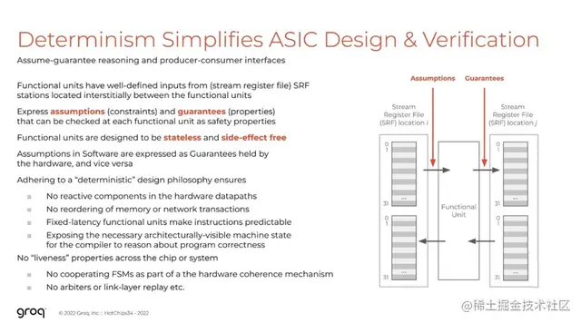 面向确定性的设计(designing for determinism )要求我们在设计时作出选择,并对该设计理念一以贯之。我们必须确保硬件可以完全由编译器来控制,这不是要抽象掉硬件的细节,而是要显式地控制底层硬件。并且编译器能够清楚地了解硬件在任何给定周期内的工作情况。