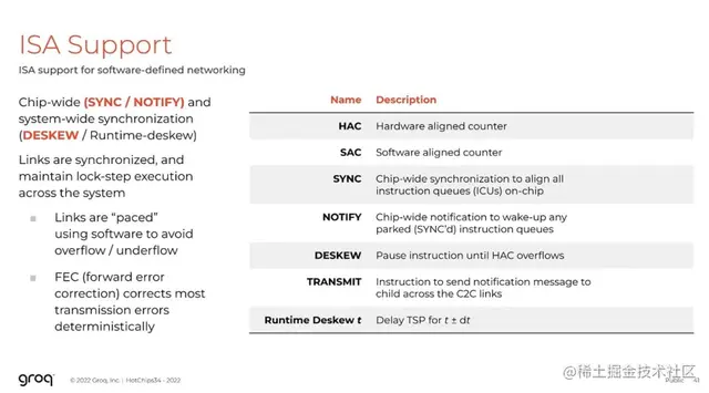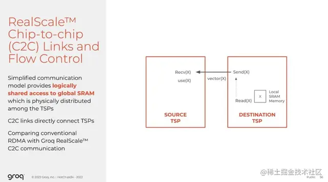 Groq芯片间链路的核心是简化的通信协议和流量控制。流量控制是由软件明确驱动的,没有硬件流量控制,所以软件必须确保它们不会溢出或下溢,我们设计的就是保证确定性成为首要原则,这也是设计的基石。