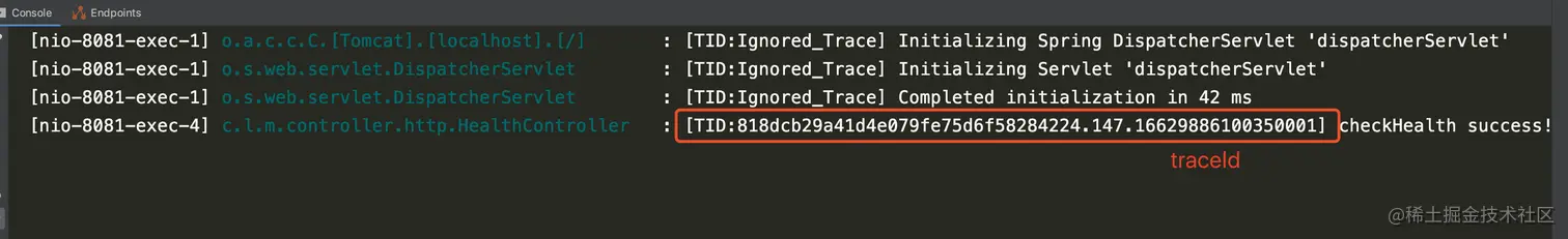 随便写了个探活接口,看看接口耗时和日志打印效果