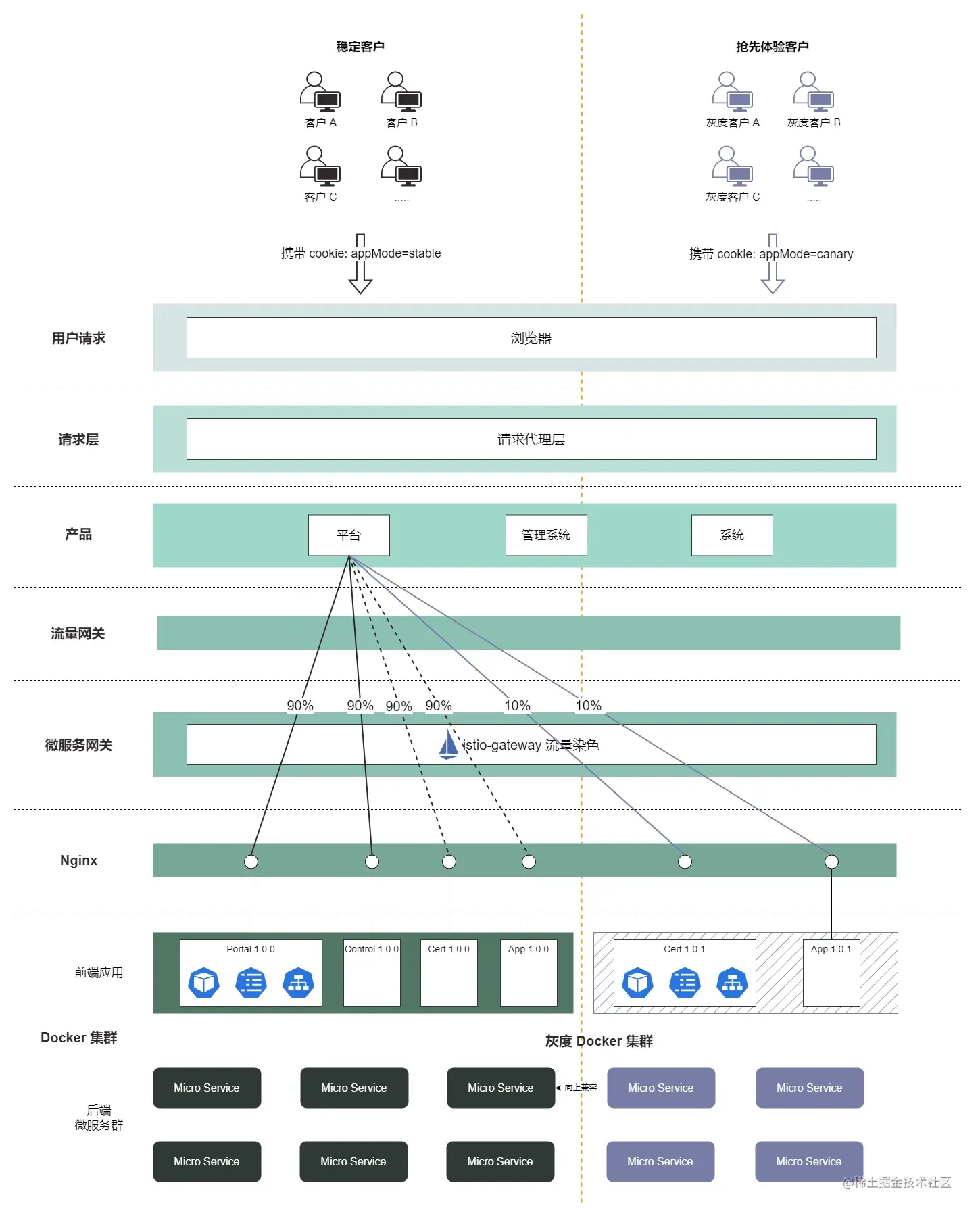 nginx,获取用户标识; - 通过灰度策略,识别用户的类型;