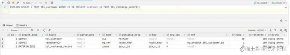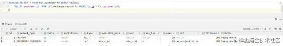 SQL: SELECT tc.*FROM tbl_recharge_record trr LEFTJOIN tbl_customer tc on trr.customer_id = tc.id