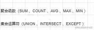 SQL中有UNION 、 INTERSECT 、 EXCEPT三个集合运算符,分表代表这集合运算的 并集、交集、差集