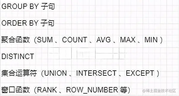 日常开发我们经常会对表进行聚合查询操作,但只能在 SELECT 子句中写下面 3 种内容:通过GROUP BY子句指定的聚合键、聚合函数(SUM 、AVG 等)、常量,不懂没关系我们来看个例子