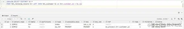 SELECTDISTINCT tc.*FROM tbl_recharge_record trr LEFTJOIN tbl_customer tc on trr.customer_id = tc.id