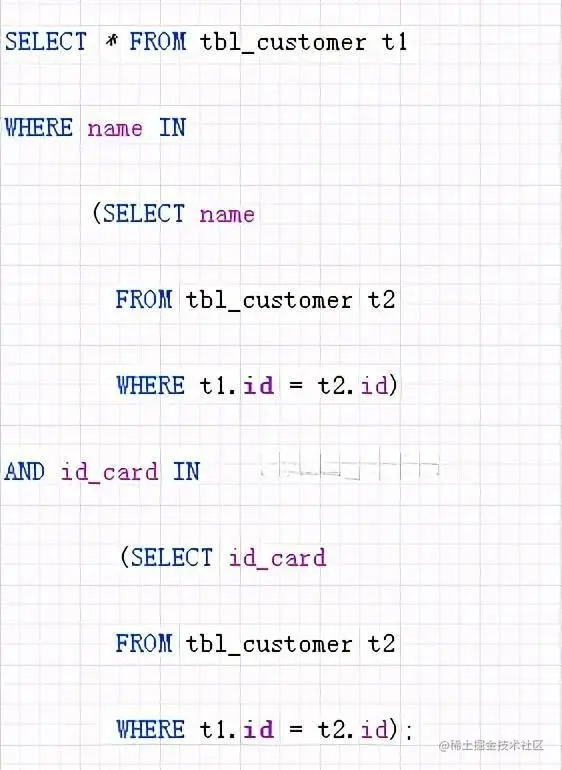 至于 JOIN 与 EXISTS 相比哪个性能更好,这不太好说;如果没有索引,可能 EXISTS 会略胜一筹,有索引的话,两者都差不多